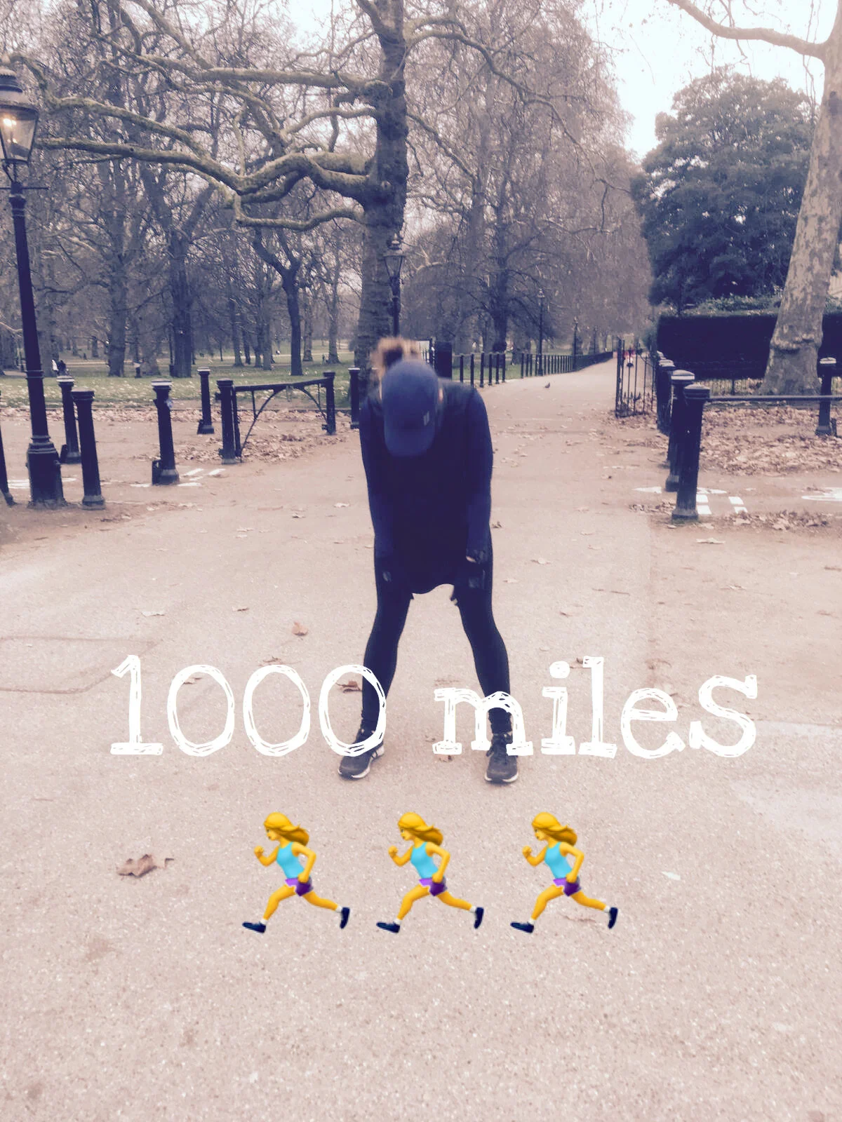 My mum is always reminding me - how do you eat an elephant? One bite at a time [as a vegetarian and aspiring vegan, I do not condone the eating of actual elephants - this one is metaphorical]. 1000 miles sounds like a lot of running. And it is. But 3 miles a day, that sounds doable. Big, impossible goals are achieved one step at a time so break yours down into something that feels manageable and that allows you to keep track of your progress over time.